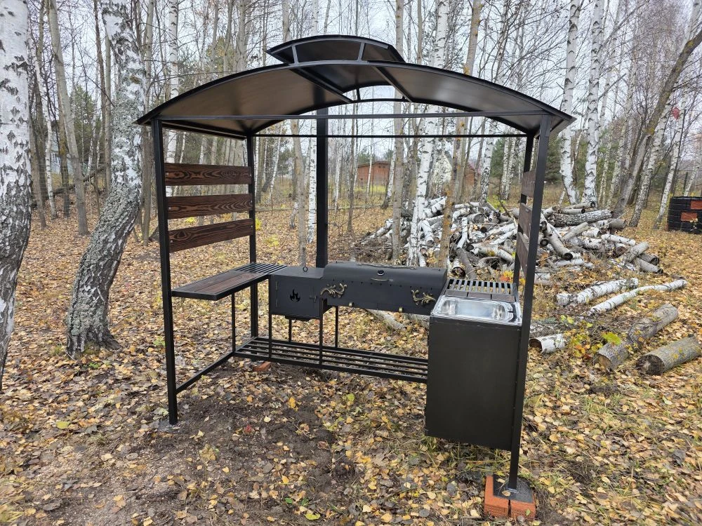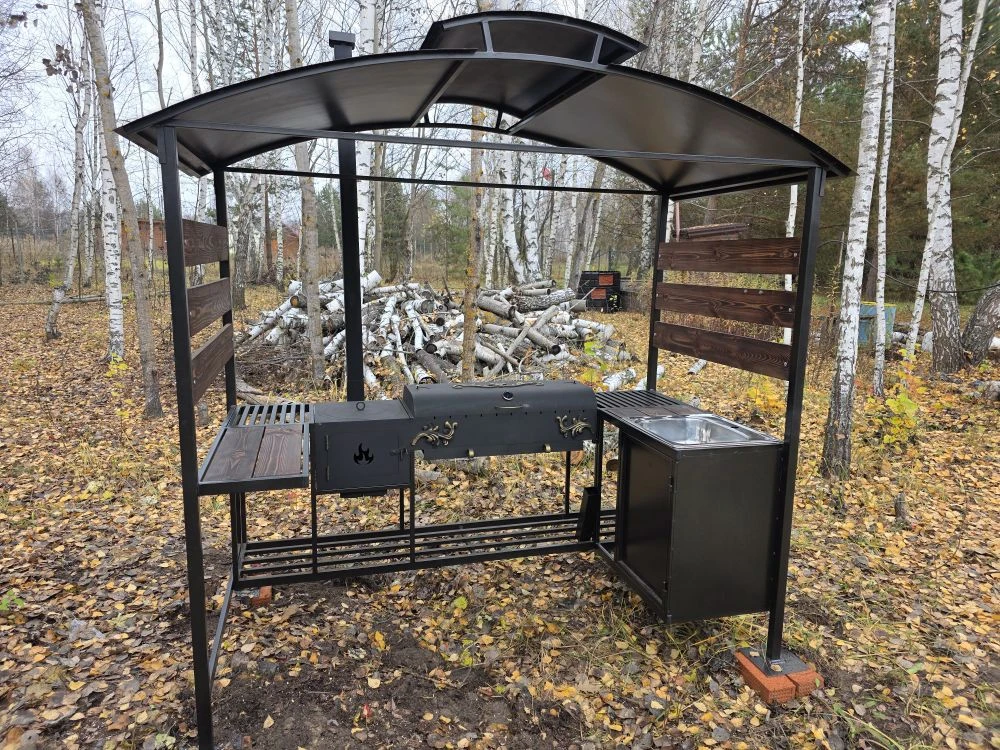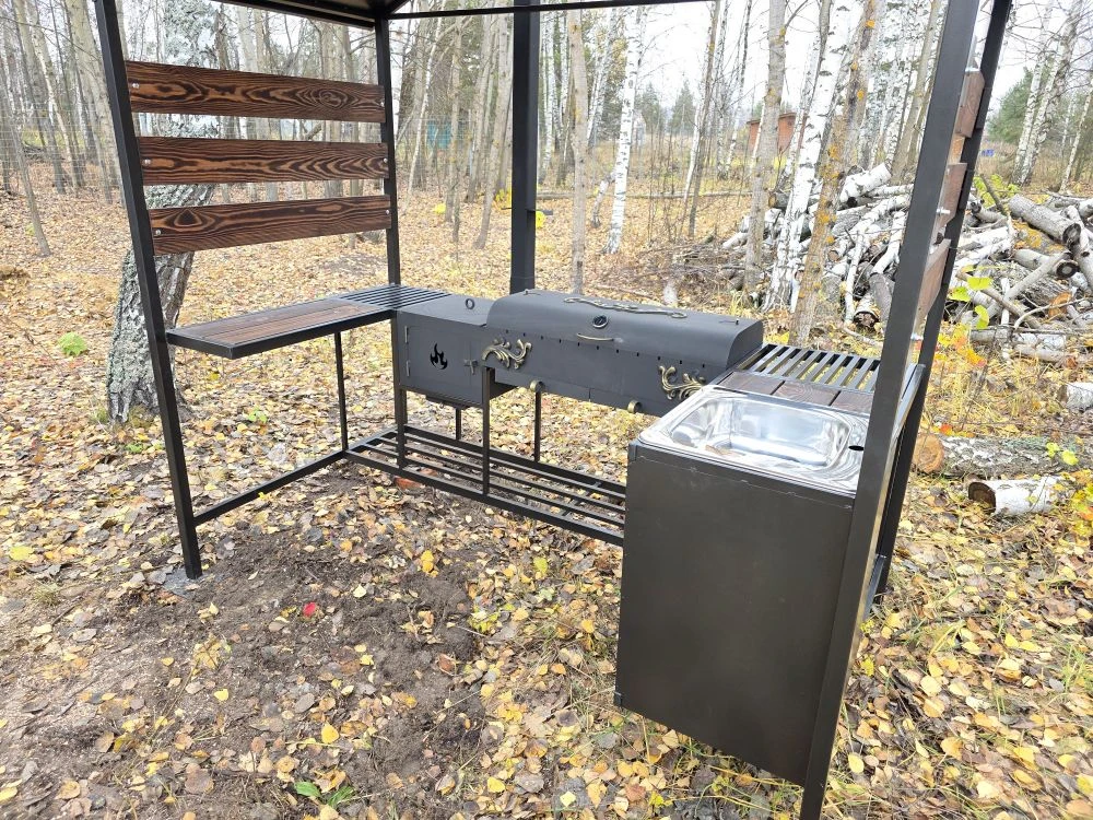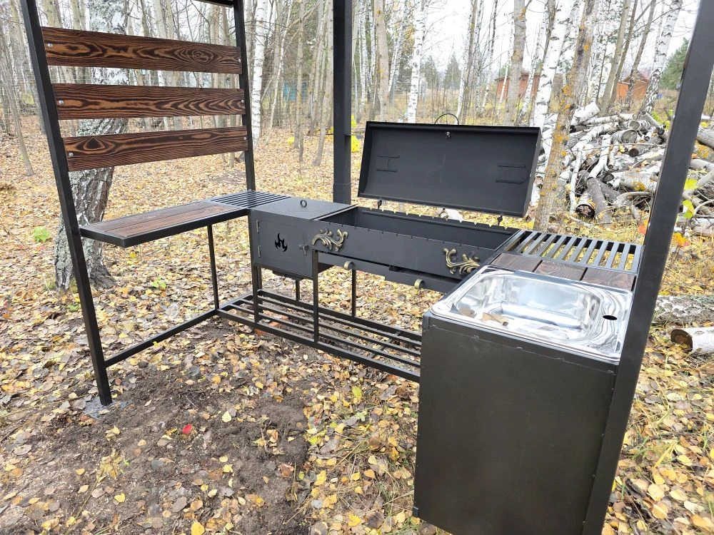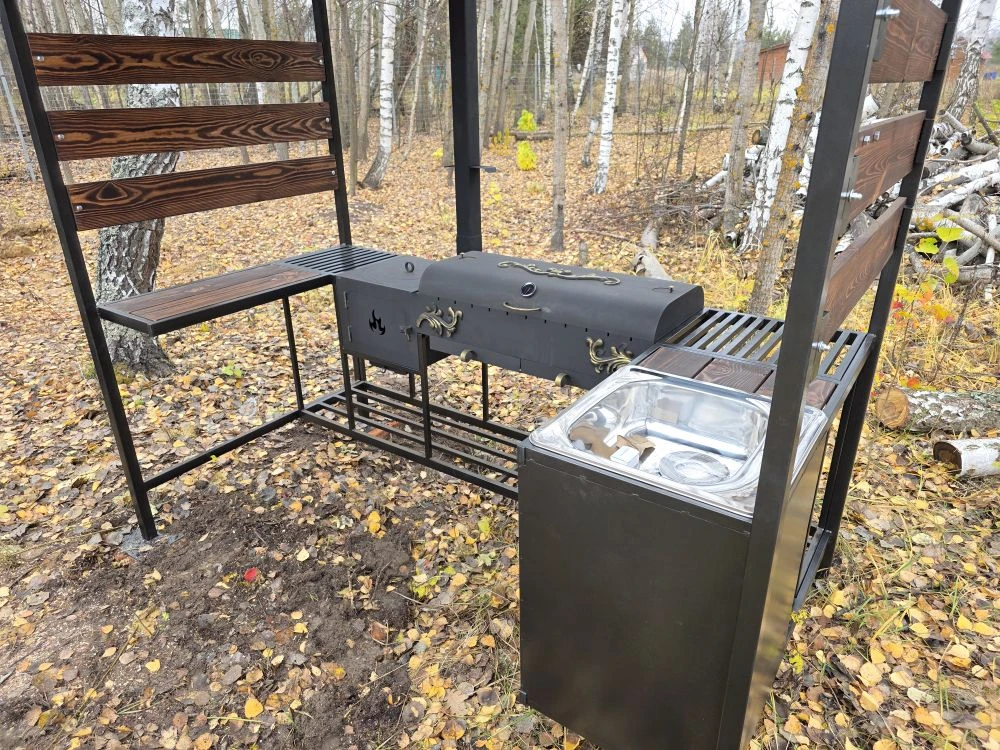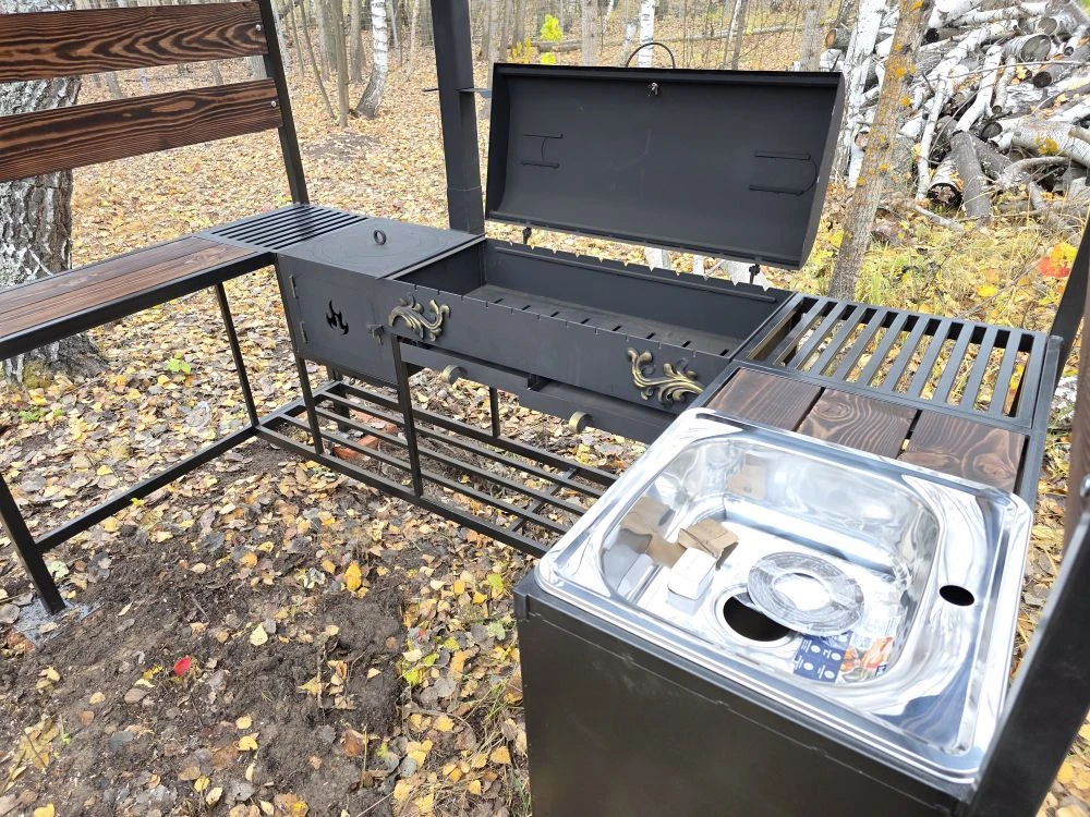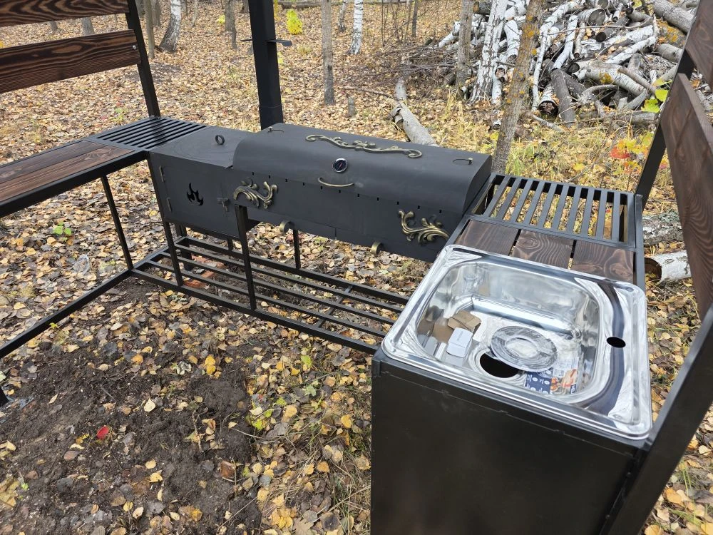 Мангальная зона из стали 5 мм с мойкой (Казань) «Многофункционал Макс»