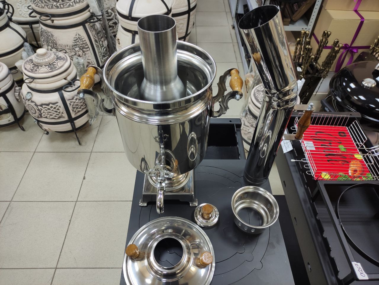 Преимущества уфимского самовара "Купец": Самовар изготовлен из пищевой нержавеющей стали AISI 304, которая стойка к механическим повреждениям и прослужит вам долгие годы. Никаких протечек — благодаря надежным сварным соединениям, выполненным аргоновой сваркой. Наружная поверхность не окисляется, а уход за самоваром максимально прост и гигиеничен.