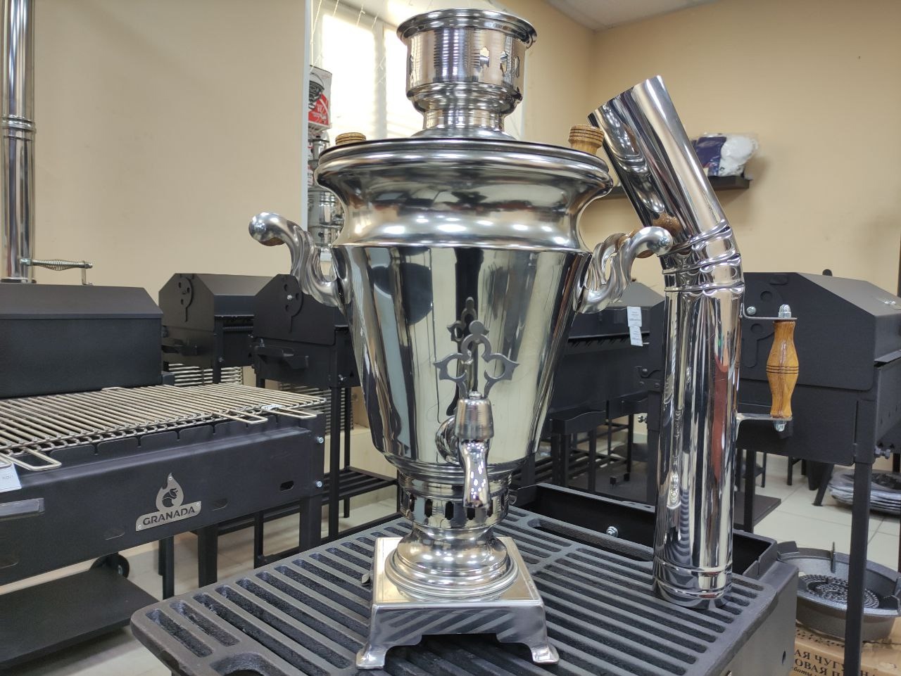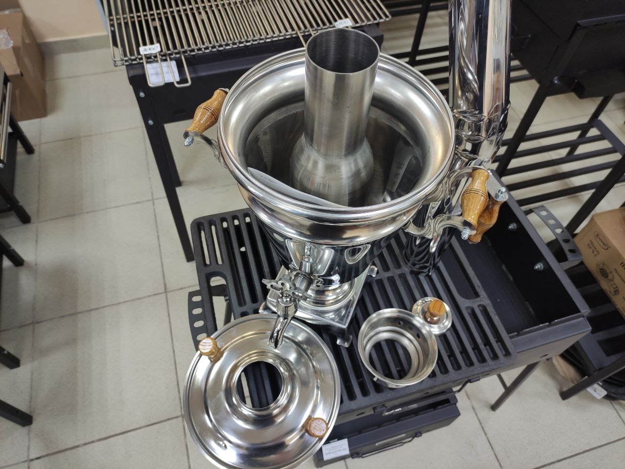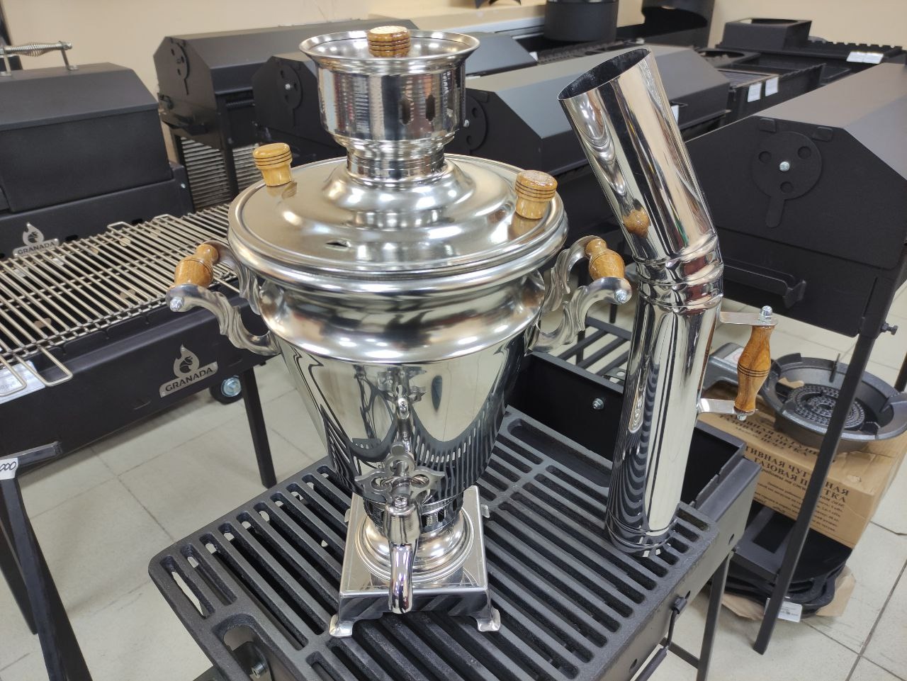 Самовар "Стольник" — сочетание традиций и современных технологий: Самовар изготовлен по старинным лекалам, сохраняя традиционные размеры и формы, которые использовались веками. Пищевая нержавеющая сталь AISI 304 гарантирует долговечность и безопасность использования. Этот металл идеально подходит для пищевых продуктов. Аргоновая сварка обеспечивает прочность соединительных швов, что исключает протечки и позволяет самовару выдерживать перегрев. Наружная поверхность не окисляется и не требует особого ухода, а гладкие поверхности легко моются. Преимущества угольного самовара "Стольник": Стойкость к механическим повреждениям. Не боится перегрева без воды. Не требует оловянного защитного слоя. Надежные сварочные соединения. Легкость в уходе.